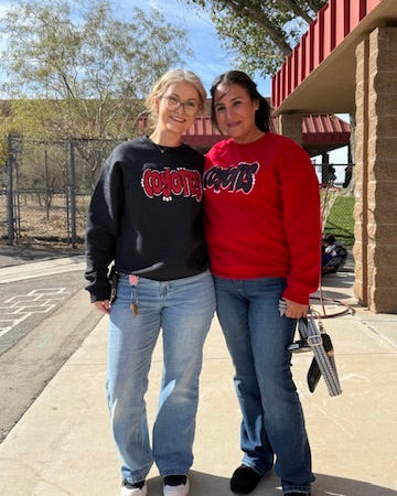 Bring the energy, the pride, and the vibes with our bold Coyote Vibe Sweatshirt! Featuring âCOYOTESâ in eye-catching red glitter appliquĂ©, this design is stitched with high-quality detail and surrounded by playful accent dots that radiate positive energy and school spirit.